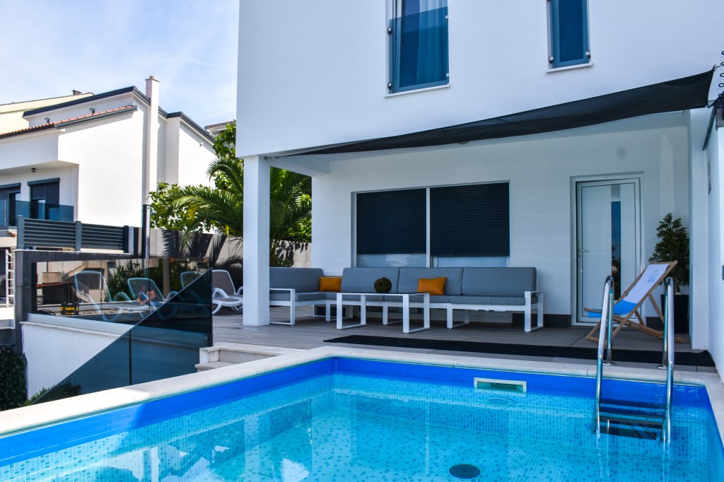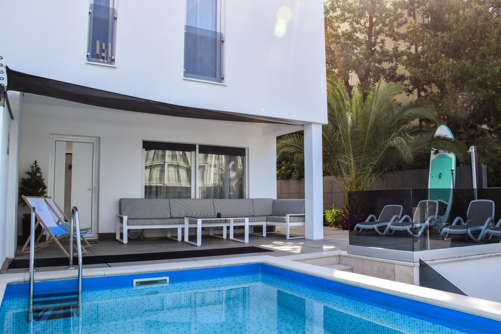 Two modern villas each have their own pool area, garden, entrance and two parking spots. Houses are set in the heart of Selce, only 80 meters from the sea and 200 meters from the town centre. Houses were built by a family and all of us put some ideas. The result is your ideal house for vacation 🙂