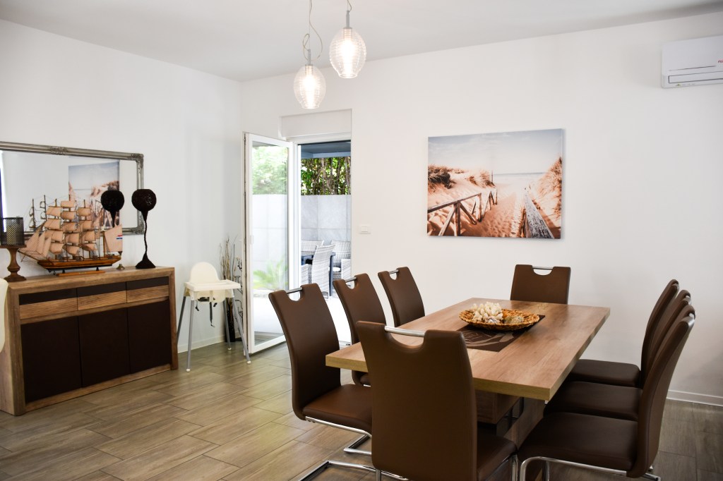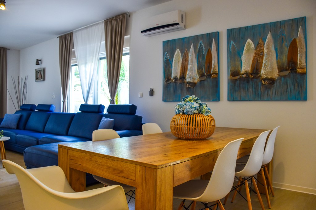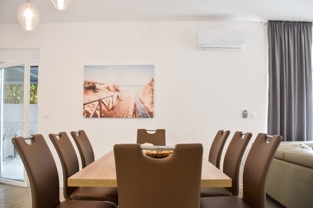 Easy access to towns Crikvenica (2km), Rijeka (22km) , Opatija (38km) , island Krk (20km). Sleeping up to 8 guests, inside of the property there are 4 spacious bedrooms, large open plan kitchen and living/dining room, 2 bathrooms and 1 toilet, laundry room, terrace with a seating area by the pool and an outside dining area with BBQ. There is air conditioning in all rooms, wifi and satellite TV channels. Each house has their own parking place, max 2 cars. Once you park car, you will not need it, because from houses everything is close on foot! Getting here: 25 minutes from the Highway exit Oštrovica. 30 minutes drive from Rijeka airport.